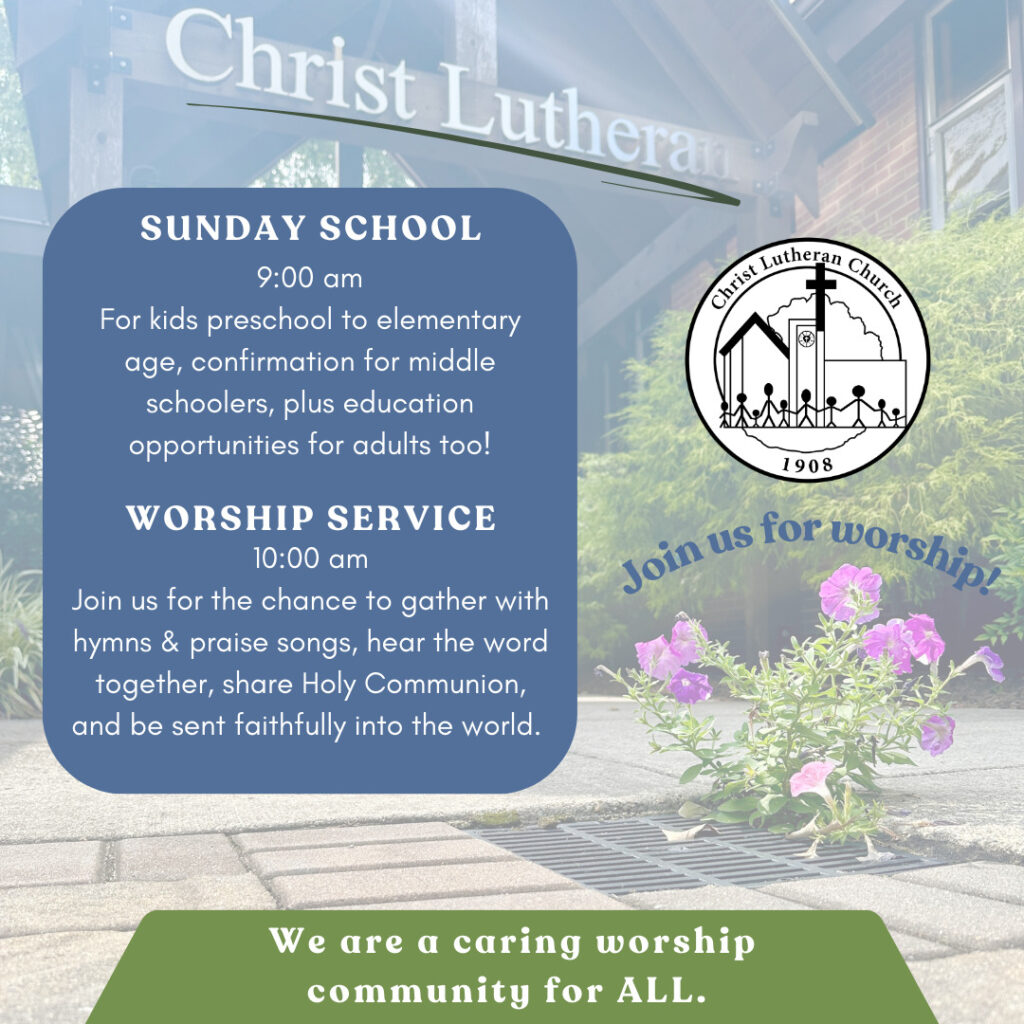 At Christ Lutheran Church we welcome every age and size, tone and culture, every orientation and gender identity, every socioeconomic station, relationship status, political belief, ability and challenge.